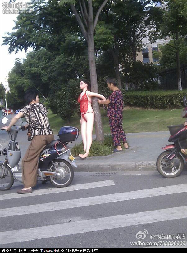 A very enterprising Chinese woman was sick and tired of drivers speeding through her neighborhood so she did what any sane person would do, tie up a sex doll to a tree so motorists would slow the hell down: