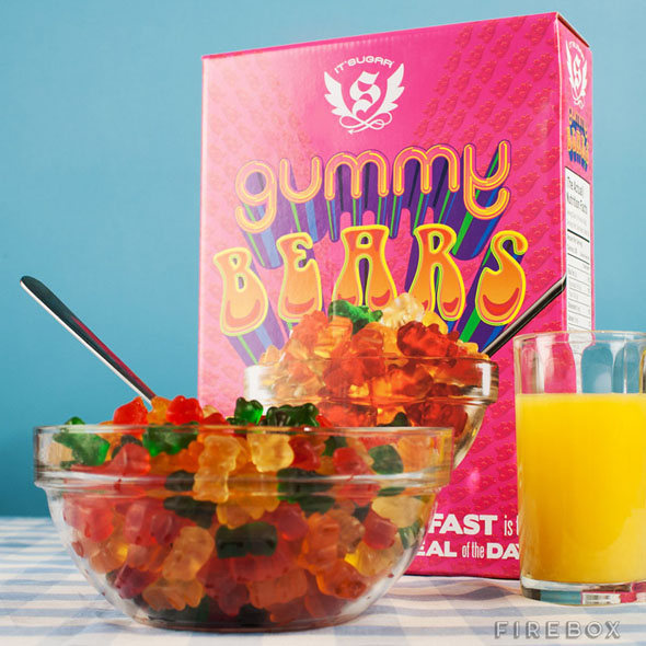And thank the candy gods because some of us gluttons are a little embarrassed to break into a Costco-sized bag of Haribo Gummy Bears so early in the morning (EVEN THOUGH WE SO WANT TO) unless, of course, they happen to be in a boxed marked "Cereal" which absolves us of our sin.