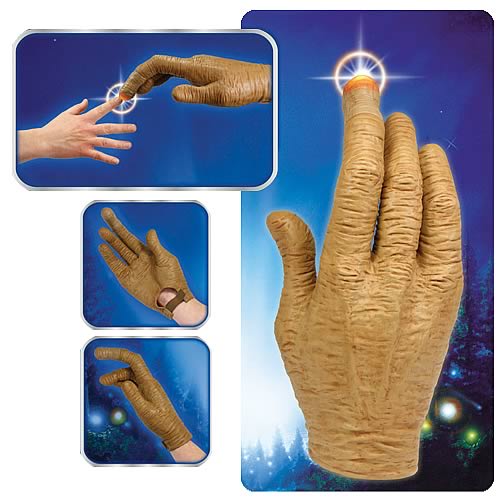 But now there is something even more frightening available for Pre-Order, a glove made to look like E.T's hand that lights up and (shudder) can be used to act out particular scenes from that Elliot/E.T slash fiction you're always downloading.